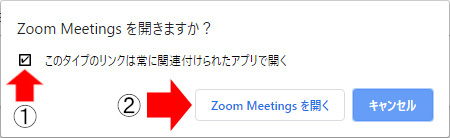 ①「□ このタイプのリンクは常に関連付けられたアプリで開く」の「□」をクリックしてチェックを入れる